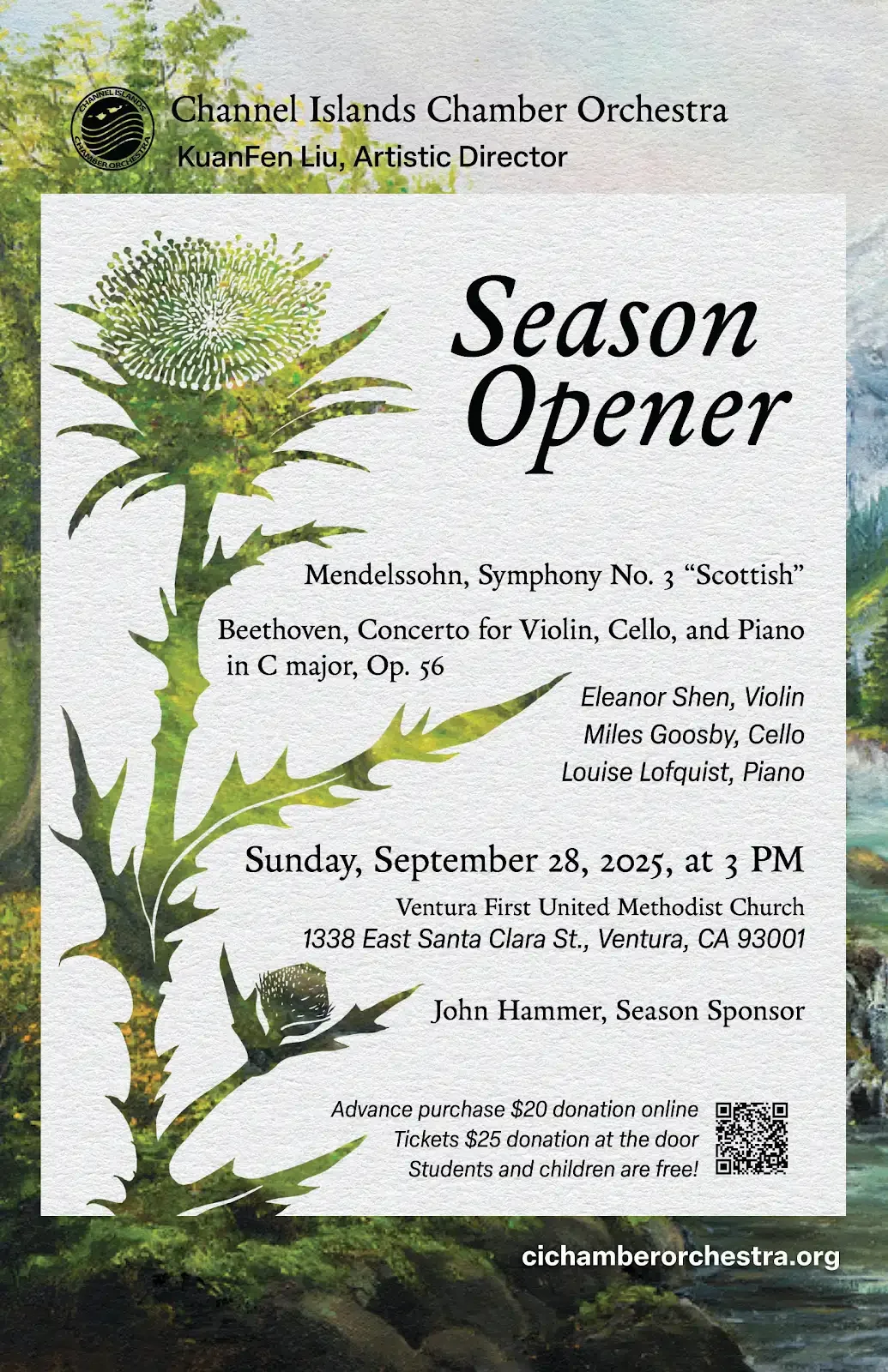 Two innovative, groundbreaking works open our 23 rd season. Mendelssohn’s “Scottish” Symphony and Beethoven’s Triple Concerto each “broke the mold” of the traditional symphony and the concerto. The “Scottish” is the first symphony to be written without breaks between the four movements, foreshadowing the cyclic form of the Late Romantic period. Beethoven’s Triple Concerto is the first of its kind since the Baroque concerto grosso form, and intertwines the solo trio and the orchestra in new and innovative ways.